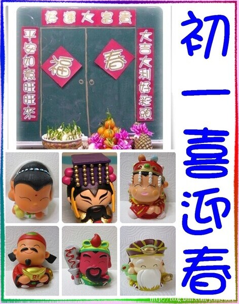 1.走春接新氣 初一5:00-7:00(卯時)或9:00-11:00、13:00之間, 進行‵走春′與‵接新氣′的民間習俗, 是大年初一參拜神明的重要儀式。 往住家東方或南方(代表走喜神方) , ‵陽廟′(香火鼎盛的正式廟宇)參拜神明, 備糕點.鮮花.素果(奇數),並以紅包作為香油錢隨喜供奉, 再將舊的平安符.香火袋置換新品,感謝神明過去一年的保庇。 並誠心祈求新年新氣象.整年平安順遂.事業亨通.健康加持。 2.參拜的神明: