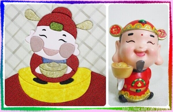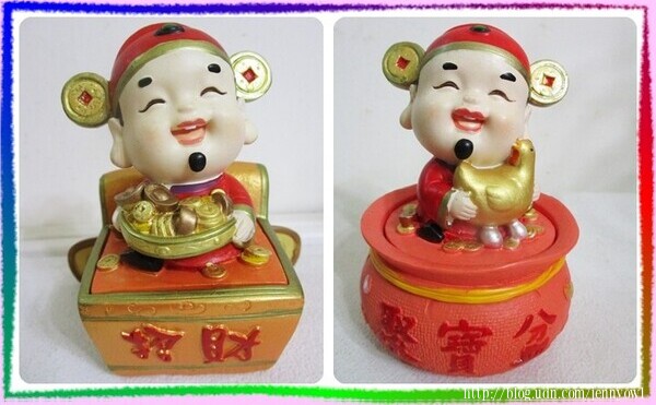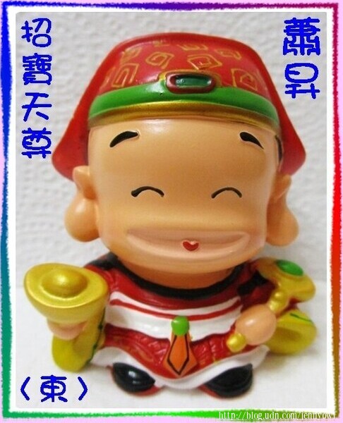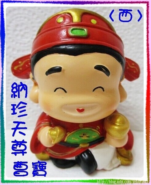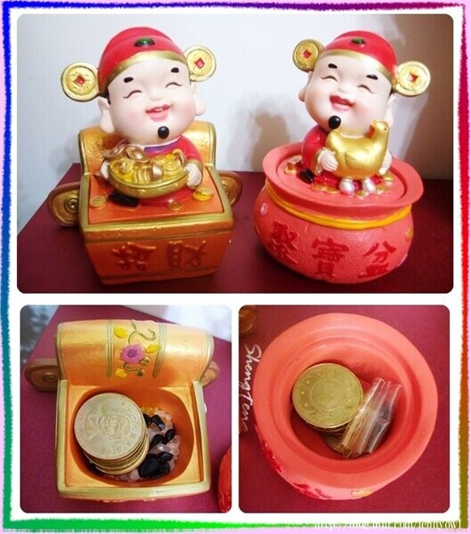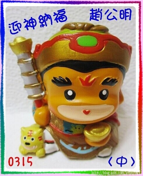 1-1.文武財神爺 方的雙手捧著一堆元寶〈招財財神爺〉, 圓的懷裡抱著金雞稱〈金雞財神聚寶盆〉