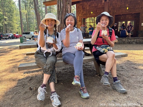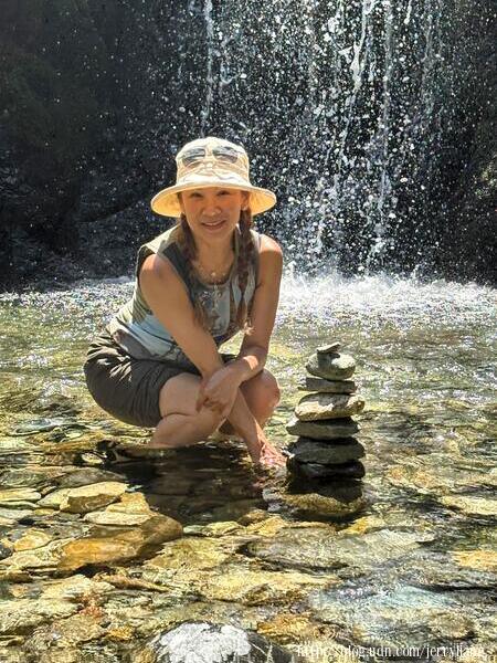 享受旅行的片刻 比較起早上的 Burney Falls,下午的 Faery Falls 顯得規模小很多,路途也比較難走,但也總是一個瀑布,而且 Burney 地區白天氣溫也不算高,覺得瀑布有點冰涼.我們在此戲水簡易午餐,便下山打道回府.回程除了加油及買點蔬果,司機兼大廚 W 晚上做了蔥油餅,煮了咖哩南瓜湯,真是幸福極了. |
