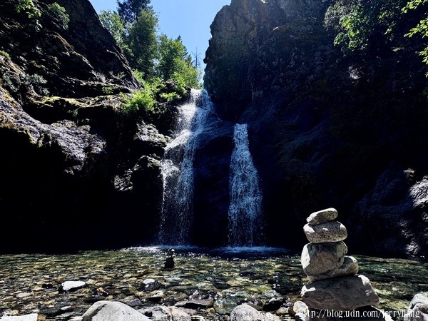 今天將造訪加州非常有名的瀑布-Burney Falls.算起來是小旅行的第五個瀑布了! Burney Falls 在麥克阿瑟紀念公園內,州立公園的入園費 $10 美元,這裡算是熱門景點,建議早上來訪,停車也容易些.瀑布有將近40公尺高,並且感覺是整個180度都有瀑布,現場感受真的很壯觀,最棒的是這麼美的景色很輕鬆就可以抵達,從停車場只要走大概十分鐘下坡就到了,沿途都是樹蔭,在炎熱的夏天都不覺得熱,早上時間我穿著短袖都有點冷. Burney Falls 還有個大約1.2 miles 的環形步道,沿著溪流走一段,之後過橋再往上爬到瀑布上方,也都走在路蔭中,非常涼爽舒適.唯一的遺憾是附近仍有野火,空氣中瀰漫著煙硝的味道.這個公園內有遊客中心,販售一些紀念品,也有比較乾淨的衛生間.