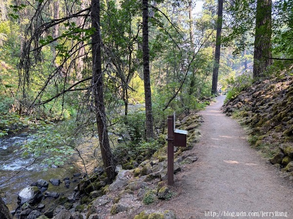 從停車場到瀑布只有0.3 miles 瀑布規模如此大,是因為上方溪流中部份溪水滲入地下,在瀑布那兒從石縫中鑽出;瀑布解說牌中說明上游有一段溪流是完全進入地下的.