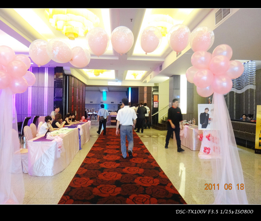 可容納近200桌的宴會廳,光紅地毯應該就要走個5分鐘...