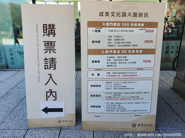 成美文化園:彰化縣永靖鄉中山路二段60號 電話:(04) 8221166 門票:全票300元,優待票280元,入園費用可抵消費100元;優惠票150元,入園費用可抵消費50元 免費導覽:假日10:00、14:00、15:00(每場60分鐘) |
