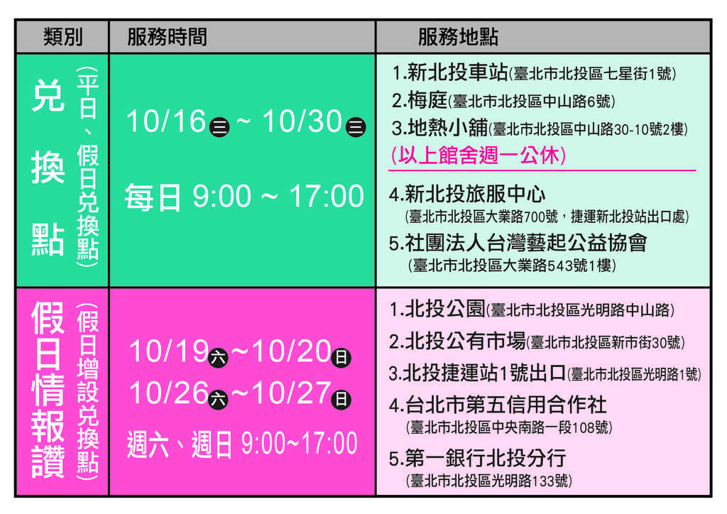 【記者于郁金/臺北報導】臺北市政府觀光傳播局為推廣北投觀光,10月16日起至30日止推出為期15天「北投小鎮漫遊趣」活動,規劃5條各具特色的漫遊路線,集結北投百家名店,一網打盡北投特色美食、創意商品、優質住宿;活動期間遊客只要憑手冊百店的當日消費發票即可兌換刮刮卡,有機會刮中日勝生加賀屋雙人房住宿券等大獎。