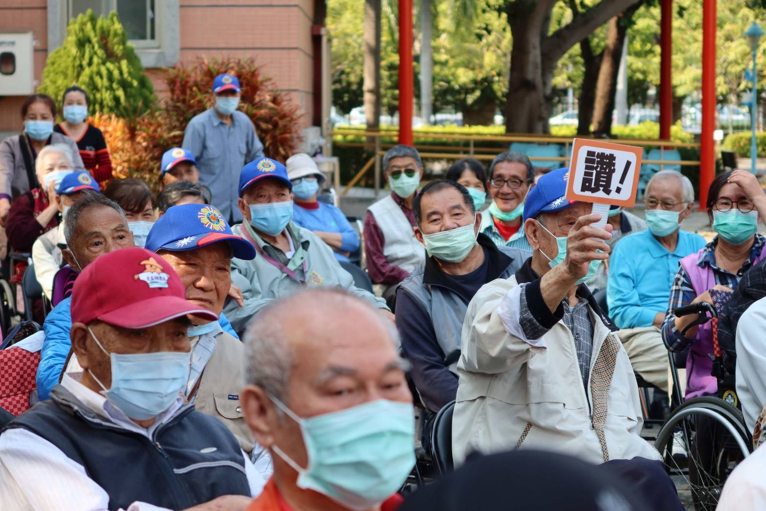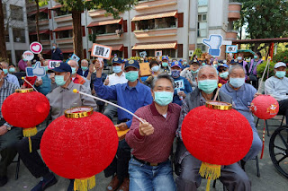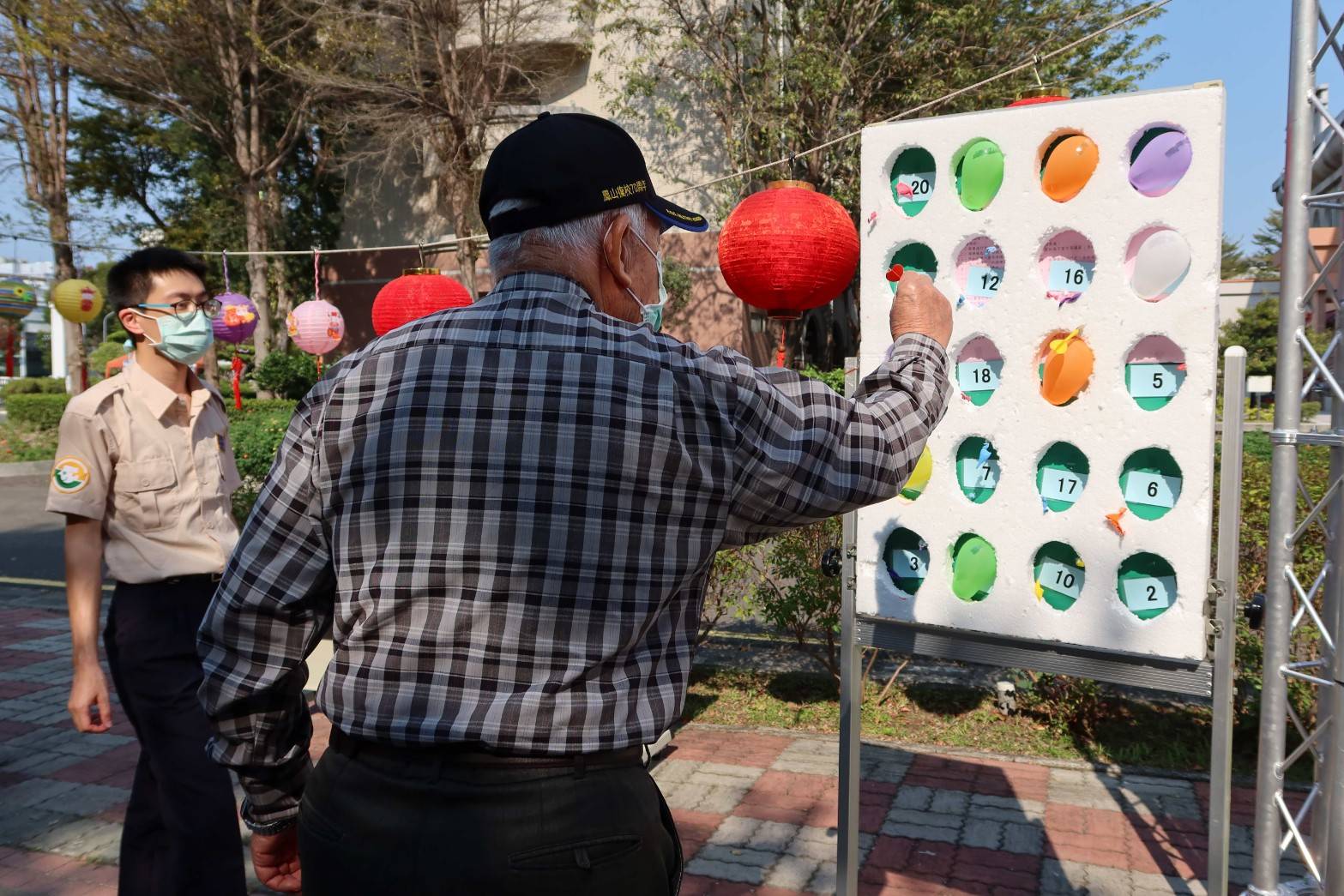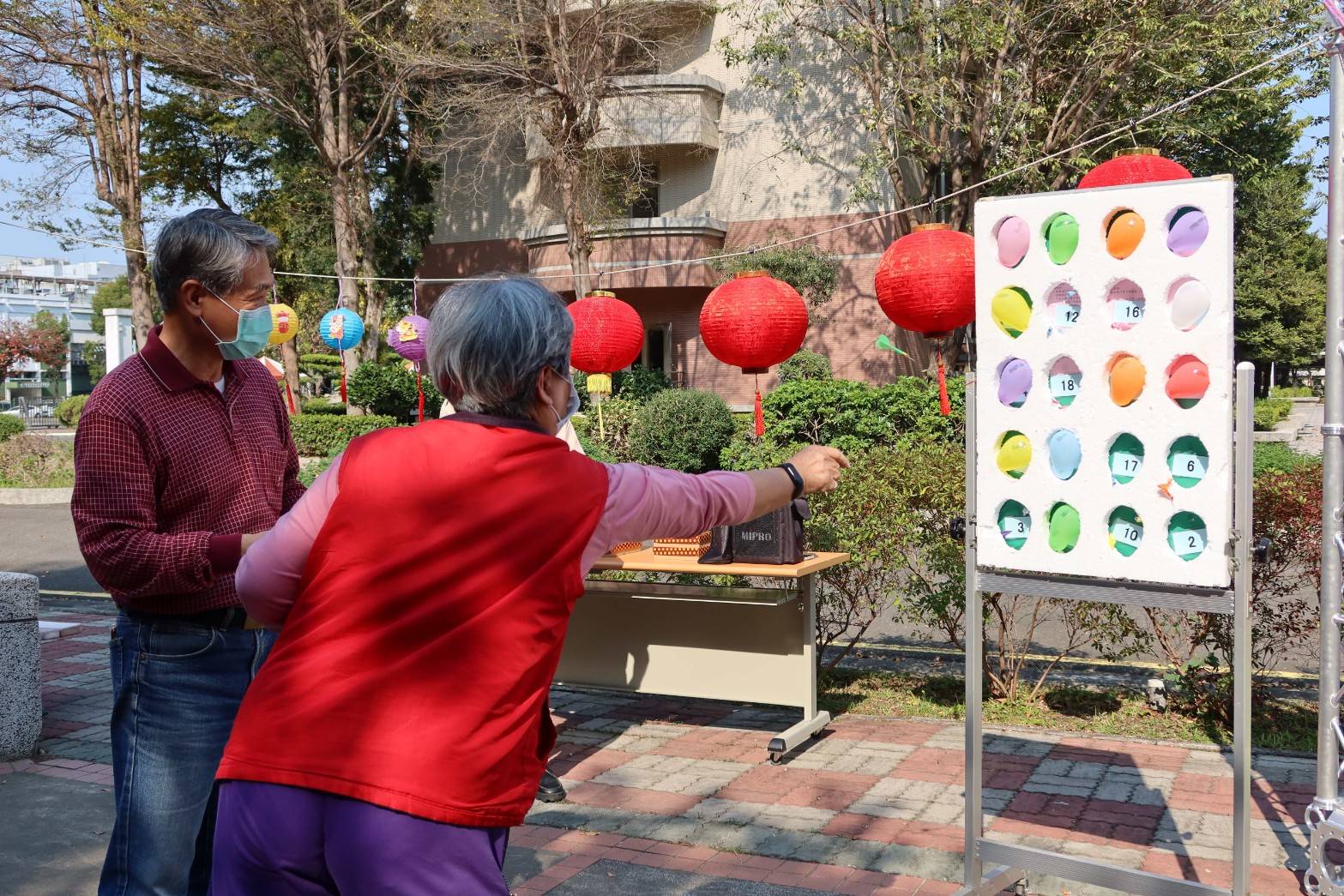 百歲人瑞邱爺爺也來到現場,長輩們見狀紛紛讓座,家主任邀請邱爺爺一起射燈謎,讓現場觀眾搶答。邱爺爺笑說:第1次看到射燈謎,真有趣!活動最後,王主任邀請住民長輩們一起提著顏色繽紛又美麗燈籠,在這充滿年味元宵節角落拍照打卡。