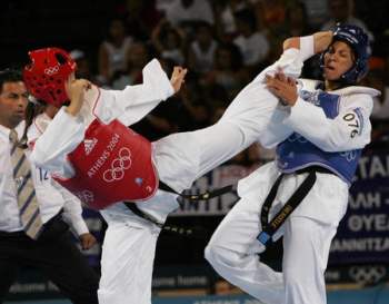 跆拳道 跆拳道(韓語:태권도)是一種使用拳腳進行格鬥、對抗的運動項目。這項運動於1988年漢城奧運會成為示範項目,並於1992年的巴塞隆納奧運會開始進行公開競賽,但其成績並不計入獎牌榜。到2000年的雪梨奧運會成為正式的比賽項目。 跆拳道是朝鮮半島人民的國技,「跆」意為運用腳進行攻守、馬步等技術,「拳」代表以手進行的攻守技術,「道」是指練武者對武術的心靈修為。它既是一項能強身健體又能防身自衛的傳統搏擊術,更是一項新興的集健身、競技、娛樂為一體的現代競技體育運動,集力學、兵學、哲學、醫學、倫理學為一體,以技擊挌鬥為基礎,以修心養性為核心,以磨練人的意志、振奮人的內在精神氣質、培訓練習者良好的禮儀道德為目的。 跆拳道運動經韓國考古學家的考證,始於西元前二十七年至西元六六八年,在高麗王朝時代,皇家墓穴中,發現雕刻有類似練習跆拳道招式守門衛士金剛石像,而在西元前十八年至西元六00年,百齊王朝的史冊裡,也記載了跆拳道對打的技巧教學解說文字。西元六六八年,新羅王國統治了朝鮮,是時經濟繁榮,建立了「花郎制度」,到了真興王以後,便創立了「花郎道」,而花郎道是花郎制度下一個將年輕人聚集在一起練武的組織。跆拳道即由這稱做「花郎道」或「跆跟」的民間武術演變而來的。 網路圖文來源:http://tw.knowledge.yahoo.com/question/question?qid=1508050605011 http://photo.sohu.com/20040828/Img221783067.jpg