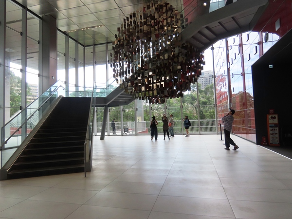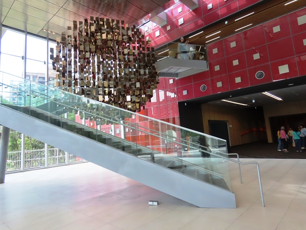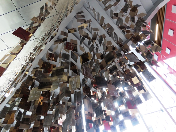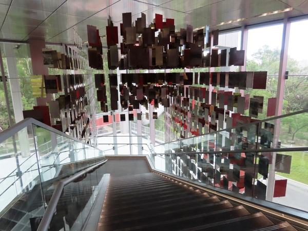 國家檔案館內「以史為鏡」的裝置藝術 國家檔案館的建築與周圍環境的融合,以及其獨特的裝置藝術,是該館最受讚譽的特色之一。這些公共藝術作品不僅提升了空間美感,更深化了「檔案、歷史與記憶」的主題。 國家檔案館中最受矚目的兩件裝置藝術,均由新銳藝術家許宗傑創作。