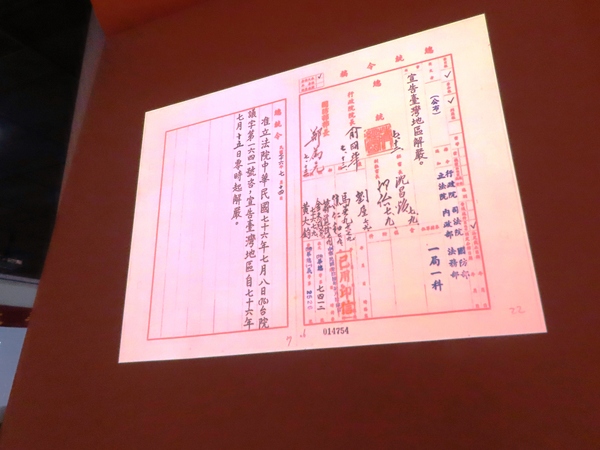 青史無聲壁上懸,光陰轉瞬卅餘年。當年雷令雲龍動,舊事塵封畫卷延 - 改寫AI詩作《觀國家檔案館重返1987.戒嚴檔案特展》七律 民國76年(1987年)7月14日,總統蔣經國發布了宣告臺灣地區解嚴的總統令,並於隔日(7月15日)零時起生效。該總統令宣告自1987年7月15日零時起解除臺灣地區的戒嚴。