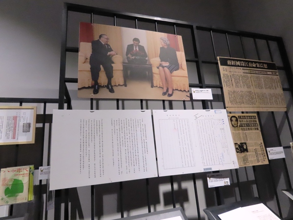 故總統蔣經國(左)於1986年10月7日接受已故華郵發行人凱莎琳.葛蘭姆(右)專訪;當時在總統府擔任英文秘書的是前總統馬英九(中) 「島讀.我們的故事」是國家檔案館(林口)的常設展,位於二樓展廳。這個展覽的目標是透過國家檔案,以時間軸為脈絡,呈現臺灣自第二次世界大戰結束(1945年)後至今,社會、經濟和政治的重大轉變與發展。 這個展覽結構宏大,並結合了多媒體、互動裝置與實物展示,讓「檔案」不再是冰冷的公文,而是與全民記憶緊密相連的故事。 🗺️ 「島讀.我們的故事」常設展五大單元 常設展依循時間線索,劃分為五個主要的歷史單元,每個單元都以珍貴的檔案文件為核心,闡述臺灣的重大轉折: 第一章:和平何時靠岸:一九四五年後的變局