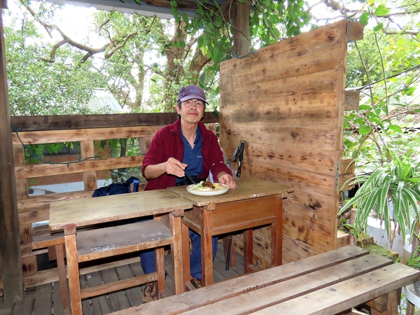 12:33 經「雲森山箋」 12:40 美軍俱樂部 美軍俱樂部客滿,需要先訂位 12:49 回「雲森山箋」吃老孟蔬食麵 「雲森山箋」為已故作家孟東籬在平等里的鄰居所開設 孟東籬(本名孟祥森,曾使用筆名漆木朵,1937年5月25日—2009年9月21日),生於中國河北省定興縣,台灣已故文學作家,力行耕讀澹泊的生活方式,以生態、哲學為主題寫作,並大量翻譯艱深的外文鉅作著稱,素有綠色生態作家稱號。 孟東籬終生奉行其「愛生」的哲學觀念,身體力行其簡僕與親近自然的生活模式,不求名利、不求物質,更因不忍殺生而茹素,雖有高知名度卻離群索居,從譯作的選擇與個人著作中表達自己的信仰。