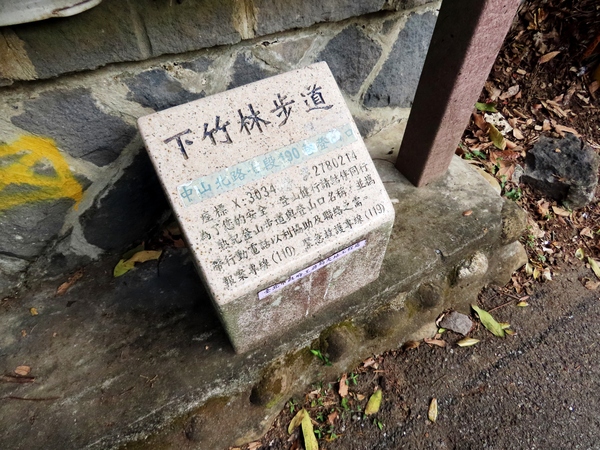 08:58 下竹林步道中山北路七段190巷登山口 「下竹林步道」又稱「白雲步道」,是天母地區與陽明山(山仔后)之間一條相對冷門、極具幽靜美感的古徑。 📍 地理位置與規格 • 海拔高度:約 150 公尺至 440 公尺。 • 步道長度:約 1.1 公里(純步道段),若從天母總站出發加計產業道路約 2 公里。 • 步行時間:單程約 40–60 分鐘。 ________________________________________ 🪵 步道特色與觀察點 1. 隱藏的基石:下竹林山(白雲山) 在步道中段,有一條不明顯的小徑可通往「下竹林山」。 • 海拔:421 公尺。 • 基石:擁有一顆「土地調查局圖根點」。 2. 林相景觀:從龍眼到翠竹 • 古老龍眼林:天母端入口處有許多巨大的龍眼樹,這在陽明山系中較為少見,是早期農耕留下的痕跡。 • 翠綠竹隧道:步道中段後,景觀轉為大片茂密的竹林。 3. 歷史興替:昔日的經濟要道 這條步道曾是山頂山仔后居民將茶葉、柑橘等農產品運往天母、士林販售的重要路徑。沿途可見一些荒廢的紅磚老厝殘跡,訴說著往昔的拓墾與興替。 ________________________________________ 🚶 推薦巡禮路線 如果您想進行一次完整的地理與歷史實測,建議這樣走: 1. 起點(天母端):由中山北路七段 190 巷進入。這段路較陡,可以先感受當年挑夫辛勤登高的節奏。 2. 中途(下竹林山):尋找圖根點。 3. 終點(文化大學端):抵達愛富二街。這裡鄰近著名的「美軍宿舍群」,您可以順道觀察冷戰時期的建築風格,感受另一段歷史的消長。
