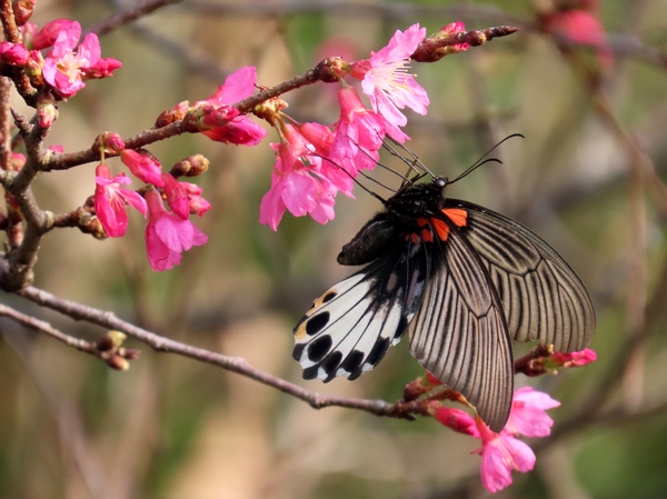 南園彩蝶舞春風,粉櫻枝頭影自從。幽渠寒翠愁孤影,暖日和陽漾淺紅 -《丙午歲晚情人節南園春望》AI詩 若淵改寫 【小引】 歲在丙午臘月二十七,適逢西洋情人節。立春已過,氣轉丙午。春陽暖照,南港公園山櫻盛綻,一隻無尾型雌大鳳蝶翩躚於粉紅花簇間,吸蜜尋芳,姿態翩然。憶及小年涵洞受困之孤禽,今已野放投身廣宇,不復尋蹤。感於生命之韌性與自然之和解,從幽暗寒翠步向陽和淺紅,萬物隨緣,情意深長,遂以此誌之。