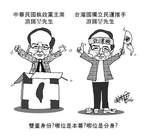 令人精神錯亂的邏輯:既在廟堂高處為執政黨主席號令天下,又下凡到民間推動翻轉國家體制的獨立革命.游主席分割式的為政治智慧令人嘆為觀止.