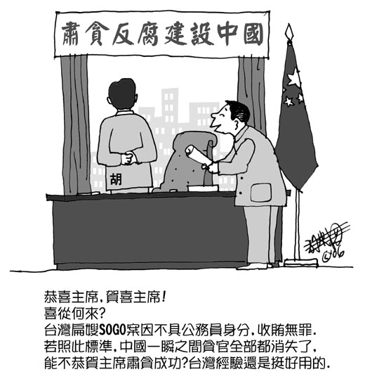送禮有罪,收賄無罪.真是太好了.相信下台的上海市委陳良宇會舉雙手雙腳贊成.因為大陸若是比照台灣的判決案例,全中國不但貪官沒了,連關在牢裡的都可以平反.