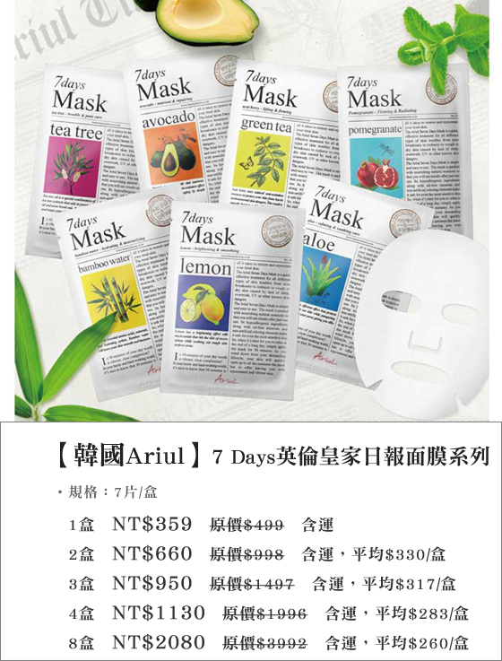 平均每盒最低只要260元起(含運)即可購得【韓國Ariul】7 Days英倫皇家日報面膜系列1盒/2盒/3盒/4盒/8盒(7片/盒)? 韓國Ariul-7 Days英倫皇家日報面膜系列評價 韓國Ariul-7 Days英倫皇家日報面膜系列如何購買 韓國Ariul-7 Days英倫皇家日報面膜系列口碑 韓國Ariul-7 Days英倫皇家日報面膜系列心得 韓國Ariul-7 Days英倫皇家日報面膜系列分享 韓國Ariul-7 Days英倫皇家日報面膜系列推薦 韓國Ariul-7 Days英倫皇家日報面膜系列回購 韓國Ariul-7 Days英倫皇家日報面膜系列電話9EE8B27FAFCD841F |
