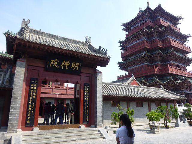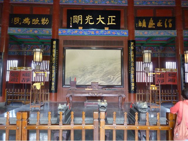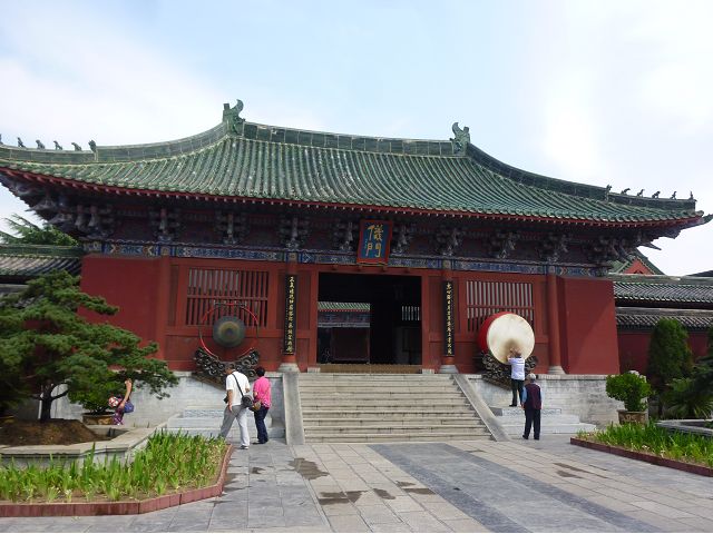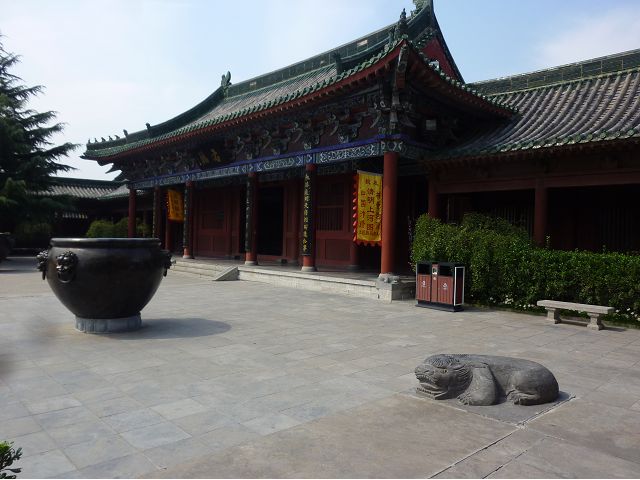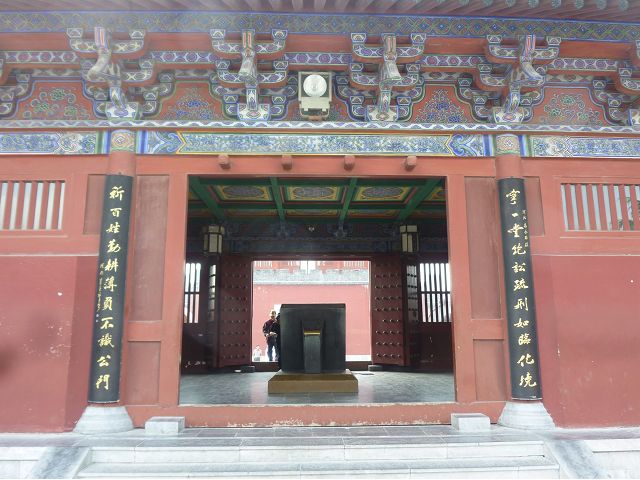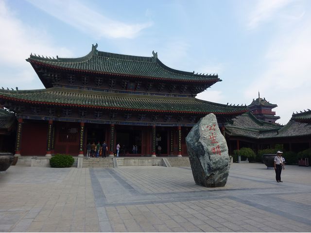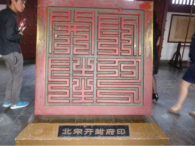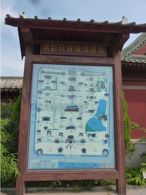 「開封有個包青天,鐵面無私辨忠奸」,這首歌詞大家耳熟能詳,很容易就連想到開封府的包公斷案,是的,接下來我們就去開封府參觀。北宋時期,開封府管理國都及京畿地區,是政府重要機構,由於包公戲風行,使得世人只知有包公(包拯),其實許多歷史名人,如寇準、歐陽修、范仲淹、蘇軾、司馬光等人也都曾在此任職,使開封府名揚四海,被譽為「天下首府」,永垂青史。 當年的開封府由於戰火和黃河水患,早已消失無蹤,今日的開封府則是以宋代開封府衙為原型重建、於2003年開放的旅遊景區,座落開封市包公東湖北岸,與包公西湖的包公祠相互呼應,形成「東府西祠」的景觀,但旅行團沒安排去包公祠。 開封府景區佔地有60多畝,可不僅只有一棟衙門喔,園區以開封府(正廳)、議事廳、梅花堂為中軸線,兩側還有天慶觀、明禮院、潛龍宮、清心樓、府司西獄(監獄)、英武樓、寅賓館等大大小小殿堂竟有50幾座之多,現場並有"開衙迎賓"、"包公斷案"等表演秀,想完整走訪一趟,對隨團旅行的遊客來說,怕是難以辦到。茲以沿中軸線參觀過、較有印象的北宋官府文化,略述觀感於後: