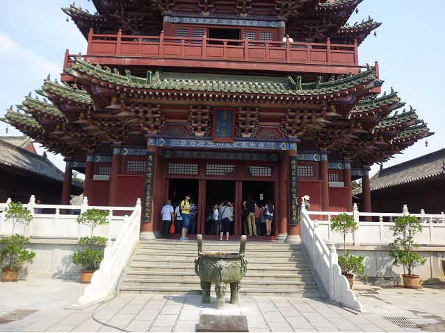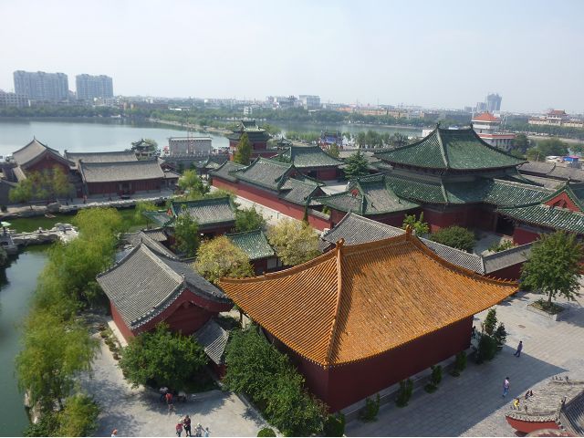 第九天(9/17),遊覽開封古城、開封府、黃河遊覽區,乘氣墊船遊黃河。開封古稱汴,至今已有2700多年歷史,先後有七國建都,故有"七朝古都"之稱,是中原地區重要的旅遊城市。開封是黃河畔的歷史文化名城,因水而起、伴水而興,但位於黃河下游,歷代黃河經多次決口氾濫,開封因此先後7次被淹沒在滾滾黃河泥沙之中,然而頑強的開封人也一次次在廢墟上重建家園,就是不搬走,找到老路再建,連城市的中軸線都沒有改變過。據考古學家發現,在古都開封地下3公尺至12公尺處,上下疊壓著6座城池,最底下的為魏大梁城,往上分別是唐汴州城、北宋東京城、金汴京城、明開封城及清開封城,構成不同朝代的古都、古城上下疊加在一起的「城摞城」奇特景觀,正是開封人一句老話說的,「開封城,城摞城,地下埋有幾座城」。