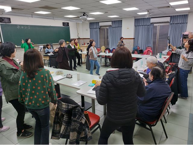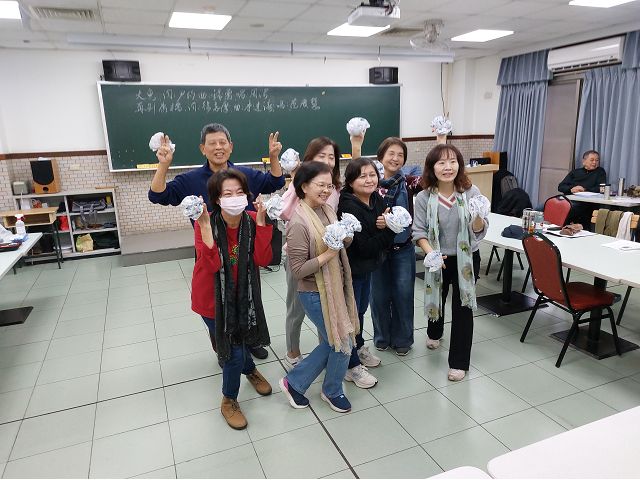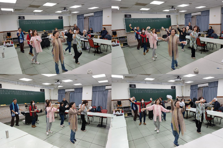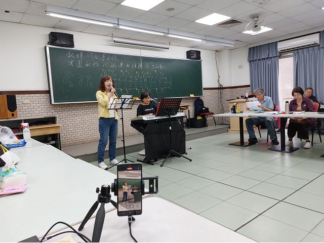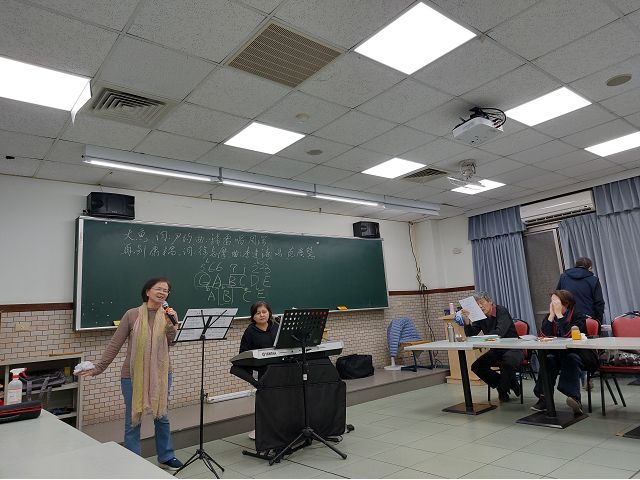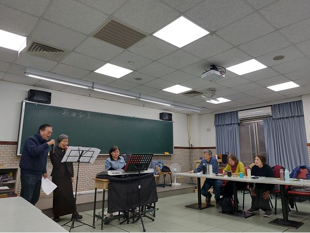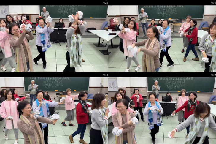 經過期中兩週的"好歌分享"課(10/31、11/7)之後,每週五上課恢復常態,按部就班、順序進行,每人都有唱現場的機會,由老師彈琴伴奏,享受明星級待遇。淑芬多才多藝,一向都由她帶領同學跳舞,教唱"大魚"(12/26)時,忽然上傳說,她要跳「大魚」給同學看,歡迎舞群加入;原來她編了舞、準備了花朵圍巾作道具,當"大魚"旋律響起,帶領同學翩然起舞。於是,當小華哥演唱"大魚 "時,教室裡同學圍坐之中的小小ㄇ形空間,竟湧進九仙女伴舞場面,創下本班空前紀錄,這場景恐怕也會是絕後吧。淑芬說,華哥是本班第一位唱歌有九位青春舞群伴舞的明星,備受尊崇耶,尤其站C位的伶倫姐,舞姿曼妙冠群倫。 學期屆臨末了,離情依依,情緒已躍然群組裡,先是老師上傳,「謝謝大家的愛護(因她比大家年紀小),謝謝恒元、玉招、Helen、伶倫、執慧、中鳳諸姐姐常常陪同一起晚餐,謝謝麗雪班長總是顧前顧後、協助拍攝紀錄,謝謝副班長琇惠姐精準有效的會計工作,還幫老師做功課……,還說若很想念她,寒假期間可以約她一起吃飯聊天。」成長於民歌時代的師生,感情聯結親密,彼此相濡以沫,訊息結尾,老師沒忘了加一顆大愛心,"愛你們,❤" 。隨後班長、副班長、同學陸續加碼,謝謝之聲不絕於耳,總括而言,就是謝謝老師用心認真的教導、謝謝默默早到幫忙拿器材擦桌子的同學、謝謝幫大家擦麥克風收垃圾的同學、謝謝總是留下來幫忙收器材的同學……,是的,該感謝美蒂老師,感謝麗雪班長,感謝琇惠副班長,感謝有緣同在一班的同學,因為大家參與、樂於分享,一起造就了週五班這快樂歡唱的大家庭。