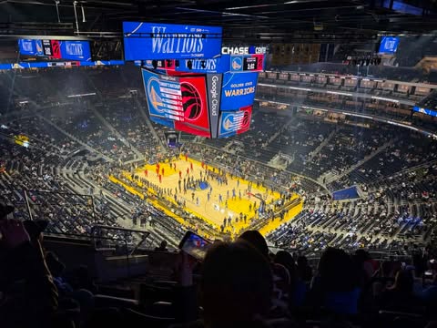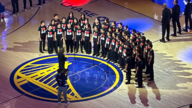NBA球賽開賽前,為了睦鄰,主場球隊都會特別請在地嘉賓或團體獻唱國歌,場面非常隆重且感人。20260121舊金山勇士跟多倫多暴龍比賽前,邀請矽谷的晶晶合唱團獻唱加拿大、美國兩國國歌,大孫女是晶晶合唱團一員,兒子通知說有實況轉播;本人會不定時收看NBA籃球賽,但通常會跳過每場賽前唱美國國歌的時段,這次為看孫女,乖乖收看緯來體育台的實況轉播,從合唱團開始獻唱加拿大和美國國歌起,緊盯不放,感覺場面確實好隆重,時間也不短,可出現個子高、站後排的孫女鏡頭就只是剎那閃過,也仍然讓我們一陣歡呼,看得好高興,反而忘了勇士輸贏,管它呢。附 上兒子所傳的畫面,以及截圖自緯來體育台現場直播的一個大孫女鏡頭。 (這次是從視屏聽看合唱團演唱,回想2013年,本人真的到過勇士隊球場,現場觀賞金州勇士對戰聖安東尼奧馬刺隊,票價貴得心痛的前段票,還是得隔老遠看著馬刺鄧肯、帕克、吉諾布里老三劍客表演,聊慰心懷;那年代,他們共同拿下了2003、2005、2007、2014四個賽季NBA總冠軍,成就不凡喔。(請參閱:「20130222「金州勇士」主場迎戰「馬刺」觀賽記https://blog.udn.com/jkt19813/9013068」)