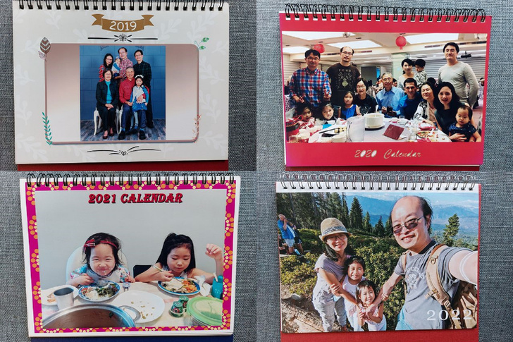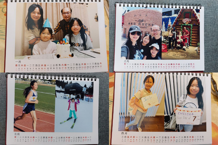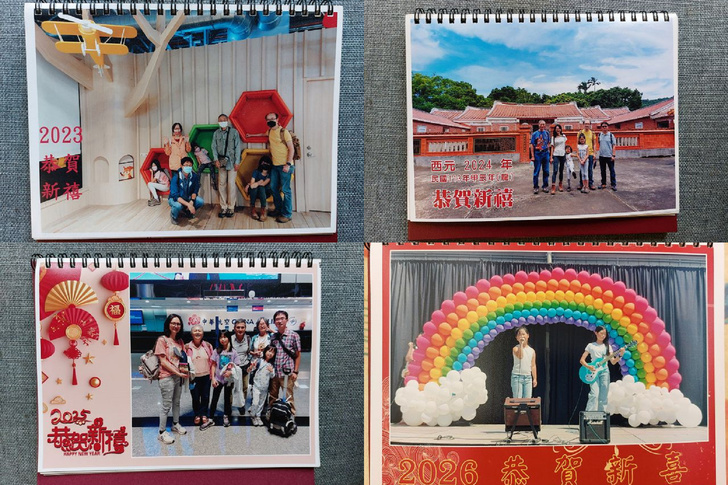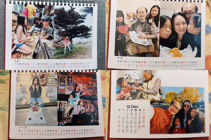 從2010年開始,起心動念想為家族活動留下一些紀錄,編輯桌上月曆的念頭油然而生,月曆擺放桌上,可以隨時看到家人、留存的風景,可欣賞、兼回味,睹物思人,天涯也若比鄰,於是,成為每年年底的工作項目之一,一式三份,分別寄送居住高雄的親家、矽谷的兒子,留新店家一份;親家說能看到孫女樣貌,好喜歡。起初,受限於照相館的版本框架,只能簡單使用單張照片,後來彼此熟悉了,可進而協調做些突破改變,如封面、縮圖照片等,內容增添豐富多元;編輯思路也逐漸成形,1、10和11月放上孫女、媳婦的生日活動照,5、8月是母親、父親節,3、4月和兒童節有關,如此這般,選輯照片有了方向範圍,只要蒐尋到材料,做起來就容易些,近年來則因孫女長大後,幾乎都以她們多采多姿的生活照為中心了。(請參閱:「2015家族桌上月曆提早面世https://blog.udn.com/jkt19813/18596537」)