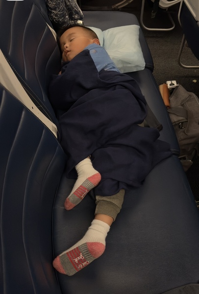 這是第二次和老二全家出國旅行。第一次是兩年前的台灣與韓國之行,那時老么才一歲多,在飛機上可能因氣壓不適,哭鬧不停,讓大家又心疼又疲憊。而這一次,他已經快四歲了,懂事乖巧,說話常常讓我們忍俊不禁。我跟他提起「上次在韓國時你老是哭鬧」,他卻一點記憶也沒有。孩子的成長真是快啊——轉眼再過八年,裘登也要上大學了。到那時,孩子長大了,自然不會總想跟著父母旅行。趁著他們還小,還願意和家人緊緊黏在一起時,能有這樣的共同旅程,實在是明智又幸福的選擇。 我覺得自己很幸運,能與老二一家住得不遠,開車十幾分鐘就能到,平日生活裡有很多交集。更感謝他成家立業之後,仍然願意邀請老媽我同行。這份親情的連結,讓我心裡充滿感恩。 感謝主的帶領,也感謝兒子與媳婦的細心規劃,這趟十天的西班牙之行一切順利、非常盡興。不但看了巴塞隆納、塞維利亞、直布羅陀、馬德里的美景,沒有錯過任何著名景點,還欣賞了佛朗明哥舞蹈與鬥牛表演,並在媳婦精心查訪的名店大快朵頤。比起旅行團的行程,我們的自由行更是充實又難忘。 在雲端啟程 我們搭周二晚上的飛機從芝加哥直飛巴塞隆納,于當地時間下午1點半抵達,共飛行8小時40分鐘。很幸運,聯合航空上還有幾個空位,我和老幺得以躺下來睡它一覺。