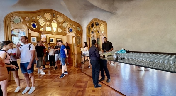 主廳内每人可以拿到一杯香檳或印有巴特略之家字樣的礦泉水。大家可以一邊啜飲香檳一邊欣賞屋内每一寸設計。