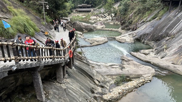 我們買了早點帶到火車上吃,中午抵達上饒,參加三天二夜的旅遊,遊覽望仙谷,三清山和篁嶺。 司機兼導遊到火車站來接我們,一團8人,第一站是望仙谷。 望仙谷位於上饒廣信一帶,屬於武夷山脈北麓的丘陵與峽谷地形。這一帶自古便是山多、溪深、路險之地,村落往往藏在谷底或山腰,與外界保持距離。江西自東晉以來,道教、隱逸文化盛行,山谷常被視為修身養性的所在。 今日的望仙谷,雖然有很多不是原有的古蹟,而是在原有山村、溪谷地貌上加以修復與重構。但溪水,山景,吊腳樓、石橋和沿溪木棧,也不得不讓人讚嘆其優美如仙境!