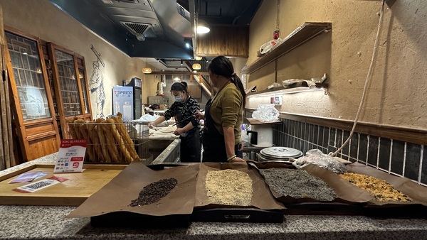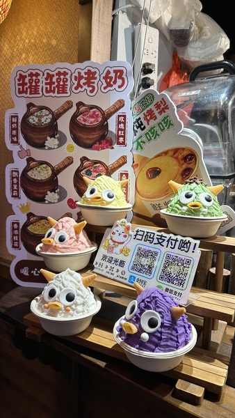 老街有許多美食,我吃了 油條包麻糬 ,有花生,芝麻,肉鬆三種口味,頗有創意,如果在台灣夜市賣,說不定生意會不錯。