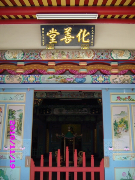 化善堂,台南二座僅存龍華派齋教寺廟之一,主祀釋迦牟尼佛,陪祀觀世音菩薩、18羅漢。 建於清‧乾隆30年(1765),是台灣最古老的齊堂,民國47年曾重新修建,後遇颱風漏水,於98年進行部份整修,現列為三級古蹟。 修建後的化善堂,不復古味,新式建築裡充滿了彩繪文化,門板、樑柱、牆壁,處處可見,有別於一般的寺廟形式。 堂內清幽乾淨,純粹齋堂修行,沒有寺廟的裊裊香煙,入行其中,會讓人心境平和,是修心的好道場。 化善堂乃龍華派漢陽堂支派所建的第一座道場,於安平效忠里海頭社李普定自宅設立齋堂,號曰「化善堂」。 清‧嘉慶2年(1797),大陸漢陽堂派總勒盧普耀,派遣其胞弟普濤(俗名盧德成)來台考察堂派弘法情況,與謝普爵全台弘道,嘉慶九年四月六日返回內地之前,將法擔付與謝普爵,為龍華派漢陽堂派副勒,總理台灣佛教龍華派。 由化善堂分支出去的堂派,在日據初期的統計有台南市的德善堂、德化堂,鹽水的善德堂,嘉義的德和堂、正順堂、太元堂、心德堂、絃德堂、龍德堂,斗六的真一堂等齋堂,影響力不弱。 ※鄰近的古蹟與景點_____ ‧海山館 ‧文龍殿 ‧單伸手魏宅 ※相關照片_____ ‧存在我的相簿裡,有興趣的人,請自行打開觀賞。 ※地址_____ ‧台南市安平區效忠街52巷7號 |