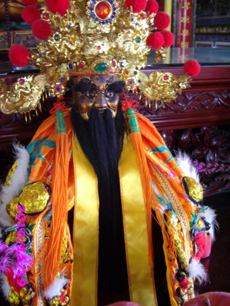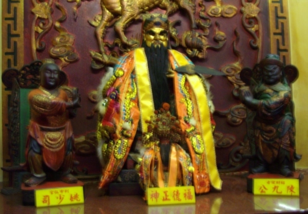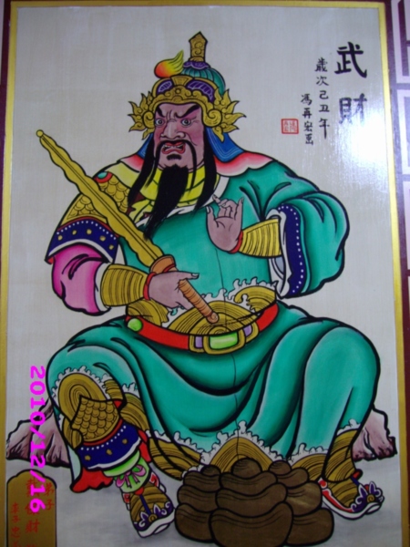 本名為趙公明,黑衣黑臉,騎黑虎,手持黑鞭,即我們熟知的武財神「玄壇元帥」。 秦時避世山中,虔誠修道,後遇「張天師」張道陵,被收為徒,至鶴鳴山精修道法,守爐煉丹;丹成之日,師徒二人分食,得道昇天。 因為曾被「張天師」賦予守爐護壇的任務,趙公明遂被道教視為護壇的最佳代表人物,封為「正一玄壇趙元帥」。 有關他的另一個來歷,則源自【 封神演義 】這本書。 在書中,他原本為峨嵋山羅浮洞的練氣士,被聞太師說動,下山助紂伐周,後遭姜子牙以「釘頭七箭書」殲滅,入封神台,封為「金龍如意正乙龍虎玄壇真君」,率領「招寶天尊」蕭昇、「納珍天尊」曹寶、「招財使者」陳九公、「利市仙官」姚少司,迎祥納福,追逃捕亡。 後來這五個人,被民間視為「五路財神」,趙公明則被視為「武財神」。 |