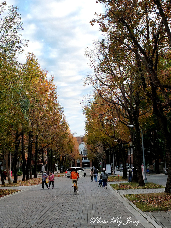 台北民權東路四段自敦北路始至民權大橋,兩邊的楓香行道樹入冬樹葉轉紅。 追根究底,台北市的公園或路旁多數種的都是楓香樹,儘管路樹管理單位,也是以楓香或楓樹之名來標示;據說,是相關單位沿襲日治時期的誤用,久之,也就相沿成習了。楓香也就變為楓樹的成員了。但,畢竟楓香與正牌的楓樹(槭)仍有些體質上的差異,所以,在楓紅的色彩表現上,也就總是不盡如人意吧。