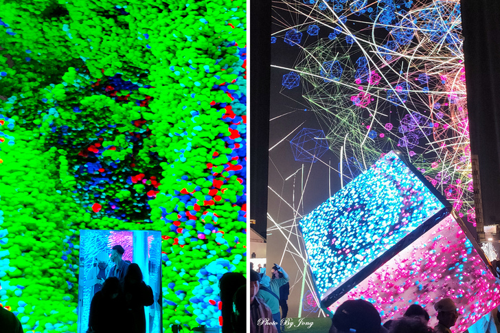 2022年台北燈節設置的花燈<無限光景>,電子屏幕內容變化萬千。 看過「相遇時刻」的翻牌人臉裝置後,對現代數位化動態裝置藝術確有了一個嶄新的認識。以今日科技數位化的發達,未來,公共藝術品的設置,是否會增加更多類似的動態裝置呢?而更多數位化的加工產品(以電腦AI代替人腦製作),是否也將被認定或普遍接受為藝術創作了呢?