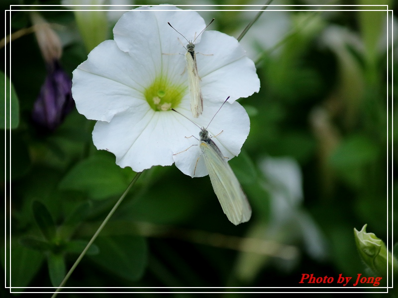 圖上至下:大飛燕草+小長喙天蛾+白粉蝶、風鈴草+西洋蜂、夢幻草+西洋蜂 據有關資訊得知,許多在溫帶地區及高冷地區較適合其生長、自然花期為春末至夏季的花樹,來到臺灣亞熱帶的海島地區,如果在台灣平地栽植,冷涼入冬的氣候,反而成為適合這些不畏低溫的花樹的花期了。 玫瑰就是最好的例子。在大陸北方或歐美,玫瑰總是要歷經寒冬冰天雪地的蟄伏之後,才能重見綠意新生,孕育含苞吐露芬芳吧!但,在台北,即使入冬,「台北玫瑰園」園子裡(非室內溫室)的幾十種玫瑰,都依然開得欣欣向榮呢!若是換作中南部的氣候,許多怕熱喜寒的植物,可能還不能適應呢。反之,畏寒愛高溫的植物,在中南部,就更適應環境了吧。