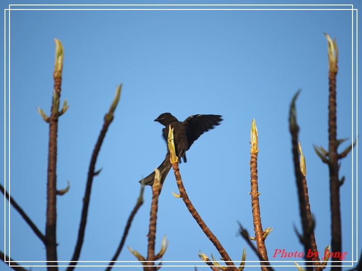 其實,就在未來館及天使館(現改為「台北典藏植物園」)這棟建築外圍,就有第倫桃樹、櫻花及象牙木樹組成的幾個樹林區塊。建築屋頂周邊的圍欄,則是松機下降必飛過以及喜鵲等鳥愛聚集停憩的場域。 八、九月間,正是象牙木結滿黃果子趨紅成熟的時間,遇到巧時,就會發現不同種類的鳥兒飛來徘徊停留及品嚐。陸續發現的鳥兒最多的是白頭翁,其他的鳥兒則發現有黑領椋鳥(黑脖八哥)、家八哥、樹鵲、伯勞鳥等。