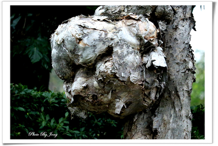在陽光照不到的陰暗面滿佈青苔 有心人讀得出寂寞與等待的符號 在那枝幹櫛比鱗次及斑剝的傷痕之上 只有知心人看得出滄桑與煎熬的歷史