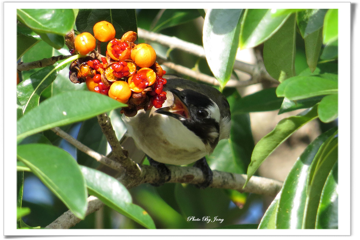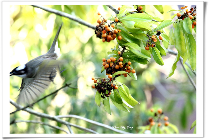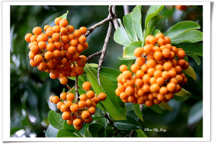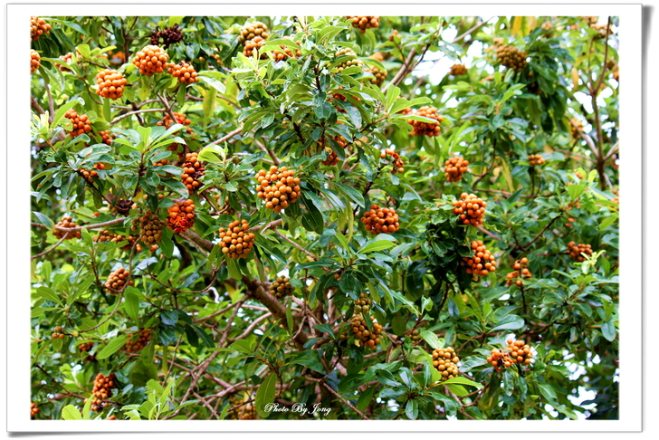 台灣海桐果由綠轉黃再紅熟+白頭翁、五色鳥、樹鵲。 時間匆匆,一年又到歲末。這段時間外出遊公園綠地,經常會見到園區裡的台灣海桐已歷經花開花謝,枝頭正結滿了串串的果子,且有的已由翠綠轉為金黃紅熟,十分吸引人的目光。據了解,十月到隔年三月,都可以看到它滿樹枝頭的果子。果子成熟時,喜愛吃果子的鳥雀們自然不會辜負這份美好的獻禮,總會選擇適當的時機出現,也是掌握捕捉花樹鳥雀美好鏡頭的好機緣吧。