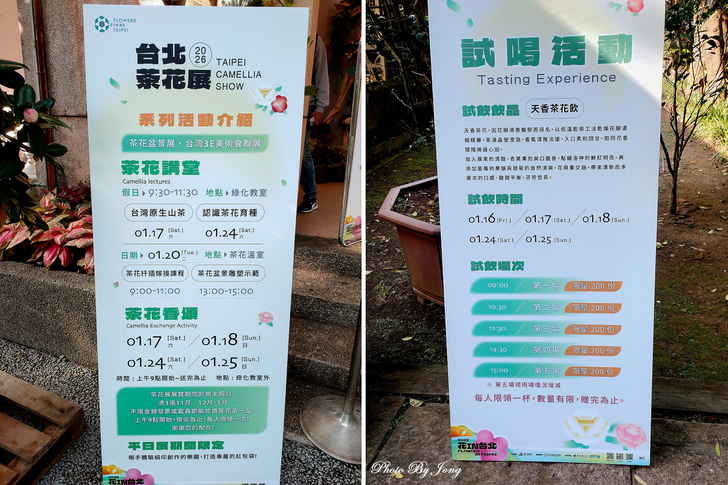今年茶花展未命名主題,盆栽仍有名家畫作搭配(台灣三E美術會—花影流年)。 在陽明山仰德大道4段175巷32號的花卉試驗中心每年在過年前後都會舉辦「台北茶花展」,今年展期自115年1月16日(星期五)至1月25日(星期日),為期10天。
