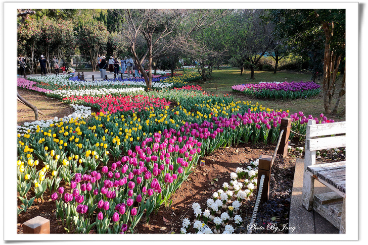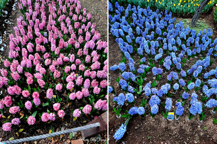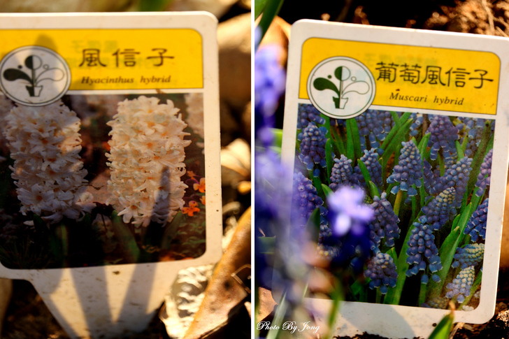 鬱金香、風信子討喜,吸引冬寒依然勤採花蜜工作的西洋蜂青睞! 陽明山花卉試驗中心可說是全台規模最大的茶花種植區域,擁有茶花林區、茶梅區、山茶杜鵑區、茶花隧道、金花茶區、香味茶花區。為了增添賞花趣,例次在 園區花圃中都還有闢出不同的區塊栽植鬱金香、毛地黃、風信子、風鈴草、葉牡丹以及菊、大理花等共襄盛舉,今年鬱金香、風信子、繡球花、菊花等仍未缺席。鬱金香、風信子討喜,賞花人特愛合拍留影!而風信子,尤其是葡萄風信子,則特別吸引冬寒依然勤採花蜜工作的西洋蜂青睞!