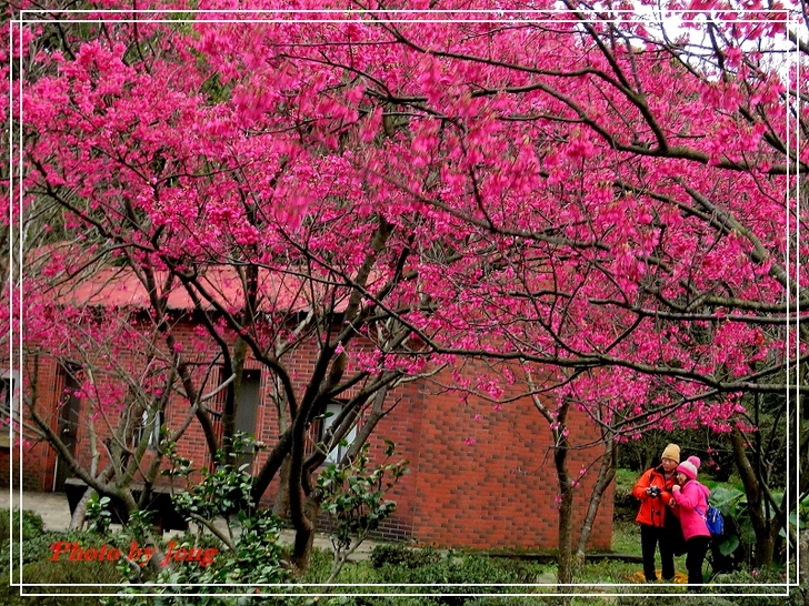 紅磚瓦房周邊的山櫻花林,曾見花開情景,如今尚未見開花,獨留寒枝待春回。 個人17日前往觀賞茶花展,經過昔日入口,如今已改為封閉的側門,原栽在紅磚瓦房周邊的山櫻花林,尚未見開花,仍是一片枯槁的寒枝,想起有一年稍晚來看茶花展時,碰上搶早春的櫻花已然盛開,與紅磚瓦房相映紅,加上遊人及情侶佇足徘徊,不同的情境,不由得讓人想起崔護的《题都城南庄》詩:「去年今日此門中,人面桃花相映紅。人面不知何處去,桃花依舊笑春風。」 如今,只能慨嘆:<賞櫻花未逢時> 去年今日此門中,人面櫻花相映紅。人面不知何處去?獨留寒枝待春回。 果然是「花開堪賞直須賞,莫待無花空嘆息」啊!