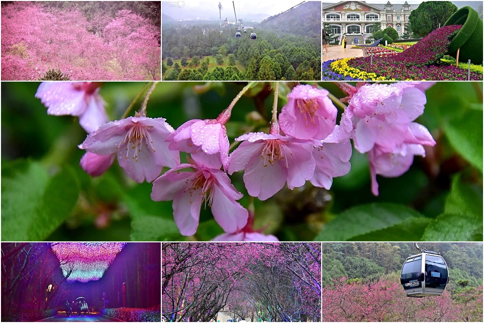 【九族文化村】 櫻花祭:約每年2月中至3月初 地址:南投縣魚池鄉金天巷45號 電話:049-2895361 營業時間:每日9:30-17:00 票價:成人980,學生880,兒童780——以上團體票各減100元。博幼票490。