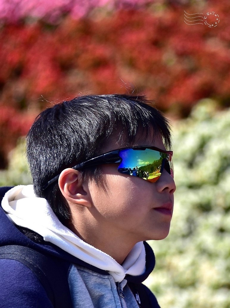 ↓小帥哥的墨鏡投映了晴空與花海。如果人生如四季,那麼他正處於春日最初的美好時分,還有大把大把的青春可以揮霍,我都已經無從羨慕起了。 絢麗多彩的錦繡大地,又有誰不希望擁有彩虹般的繽紛人生?