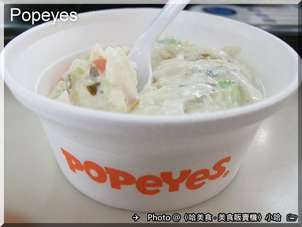 先來說說這個生菜沙拉,這個份量不大, 奶醬比較特別,淡淡的口感感覺,生菜出水後還蠻特別的... ![]() POPEYES小雞翅小哈推薦一定要熱熱吃, 值得一提的是雞肉吃起來挺多汁的,算新鮮的.. 外表裹的炸雞粉真是炸到好酥好脆,相當的爽口!!