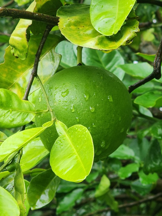 午後雷陣雨過後清晨的陽光斜斜灑落,柚子掛在枝頭,沉甸甸的模樣像在提醒我,雖然秋老虎還在發威,但中秋真的要來了!