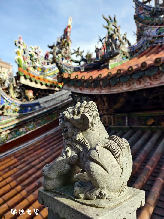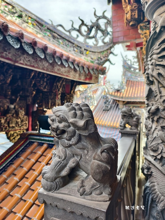 廟前的龍柱氣勢磅礴,而那一對鎮守廟宇的石獅,歷經風霜,眼神卻依舊威武,它們是歲月的見證者,也是工匠精神的具體呈現。