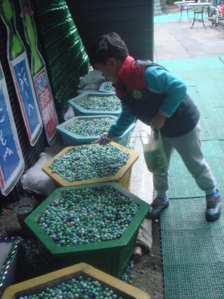 最後是小朋友最愛的掏寶區---撿彈珠(老闆太有創意了居然每人可以撿一袋彈珠回家---感恩哩)