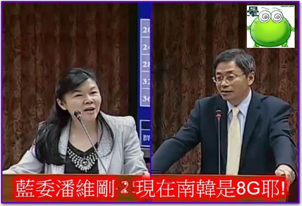 ▲面對潘維剛強調南韓現在8G,科技部長張善政笑著說「事實上我今天第一次聽到」。 「現在南韓是8G耶!」 藍委潘維剛質詢:我們4G落伍了 2014年10月2日 ETtoday 5G、8G傻傻分不清楚!國民黨不分區立委潘維剛日前質詢科技部長張善政,強調「現在韓國是8G,那我們4G會不會落伍了!」這番話讓張善政聽了大笑三聲,幽默回答「事實上,8G我是今天第一次聽到」。潘維剛質詢出槌,網友紛紛嘲諷,「拜託至少質詢前先做功課好嗎」、「看她準備GG(完蛋)」。 潘維剛在9月25日質詢張善政時,振振有詞地強調:「現在我們4G,您要知道,現在韓國是8G喔,韓國再推8G,那我們現在到底再推4G會不會落伍了!請問!」張善政:「哈哈哈哈哈,韓國前陣子5G,他說他已經運轉了,事實上只是一個demo,事實上… 8G我是今天第一次聽到」。潘維剛馬上遭打臉,回答:「喔,這樣子是喔」。 臉書粉絲團「公民廟口-立委在做天在看」2日PO出潘維剛質詢張善政22秒片段,怒批「潘大立委,質詢拜託請先做好功課!」網友熱烈討論,有人開玩笑說「我只聽過G8」、「還16G呢 她以為是隨身碟啊!」、「這種質詢水準… 領的是人民的納稅錢啊!」