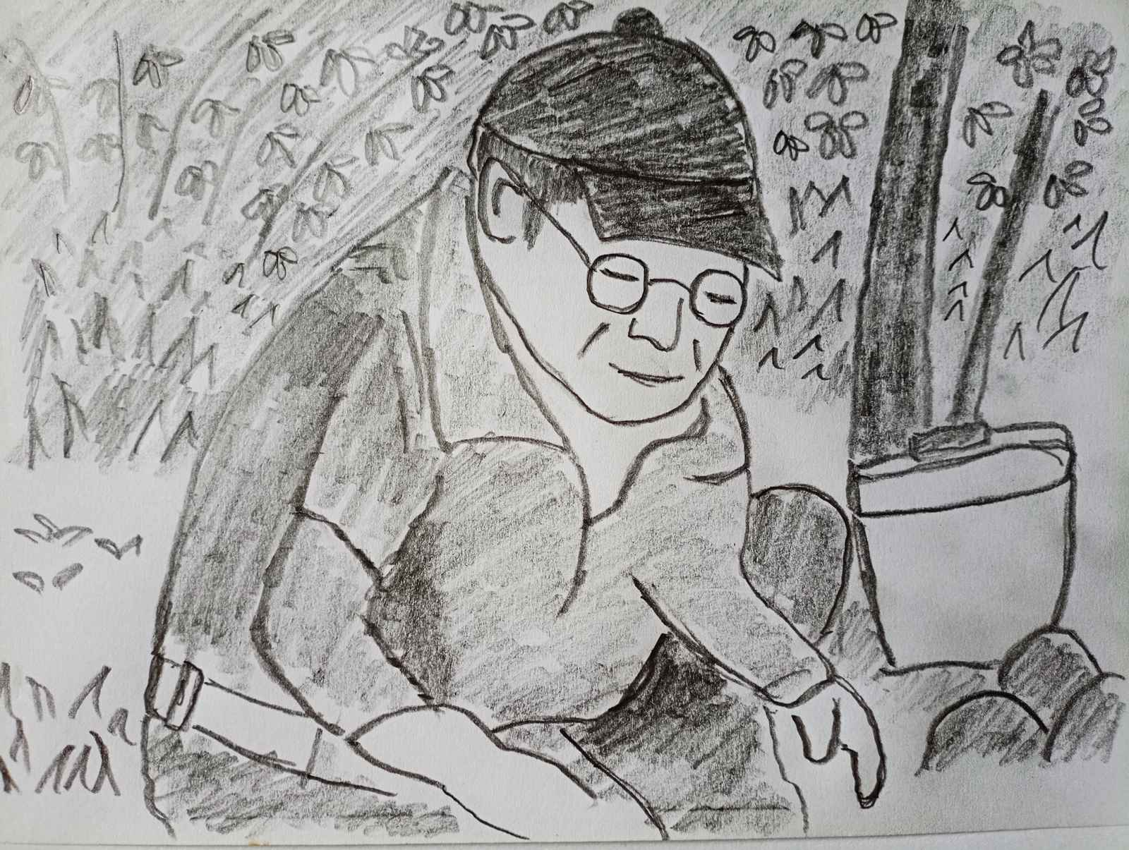 ⬆ 拿拐杖的中國老夫婦 (鉛筆+黃色素描紙)