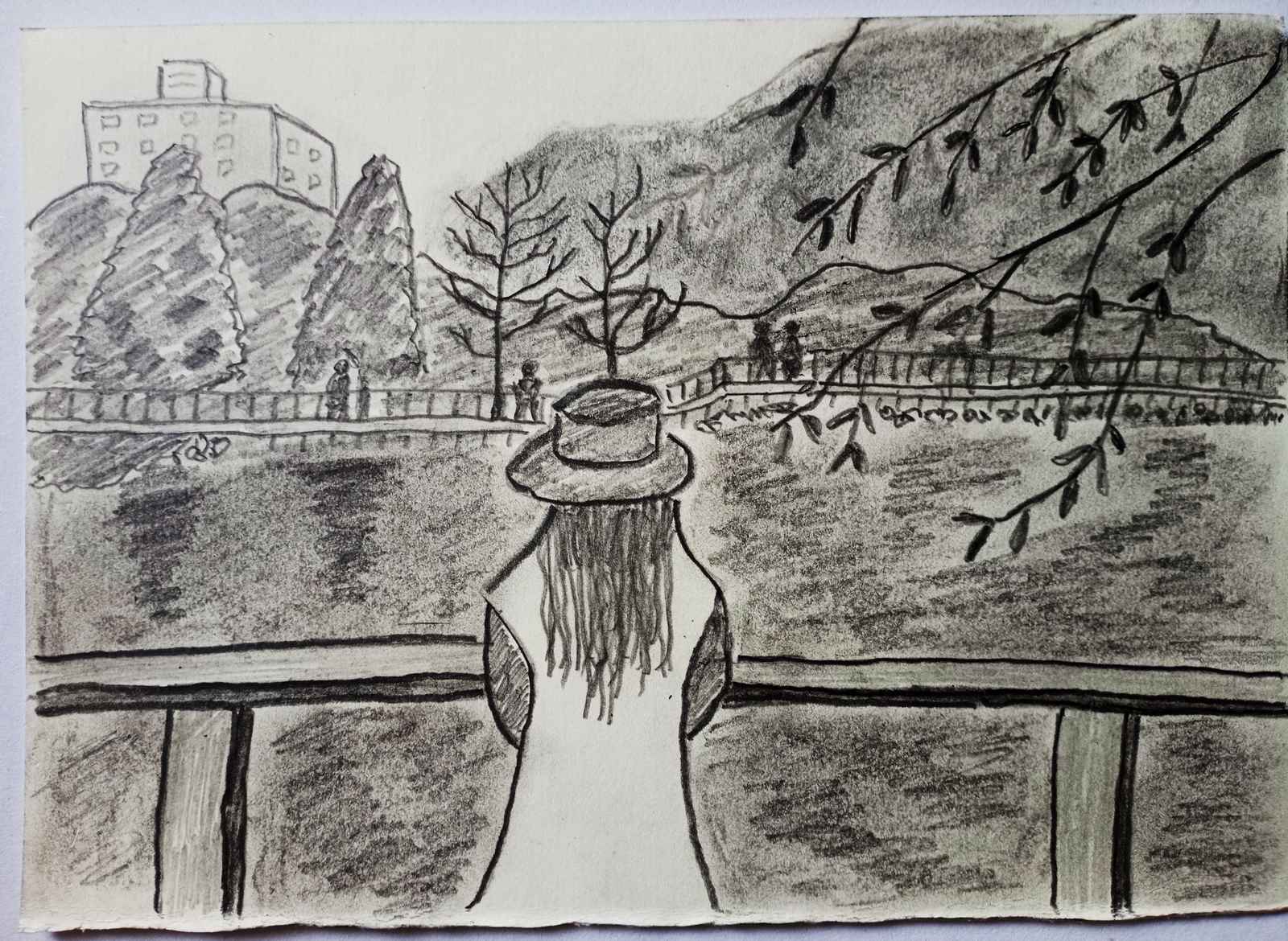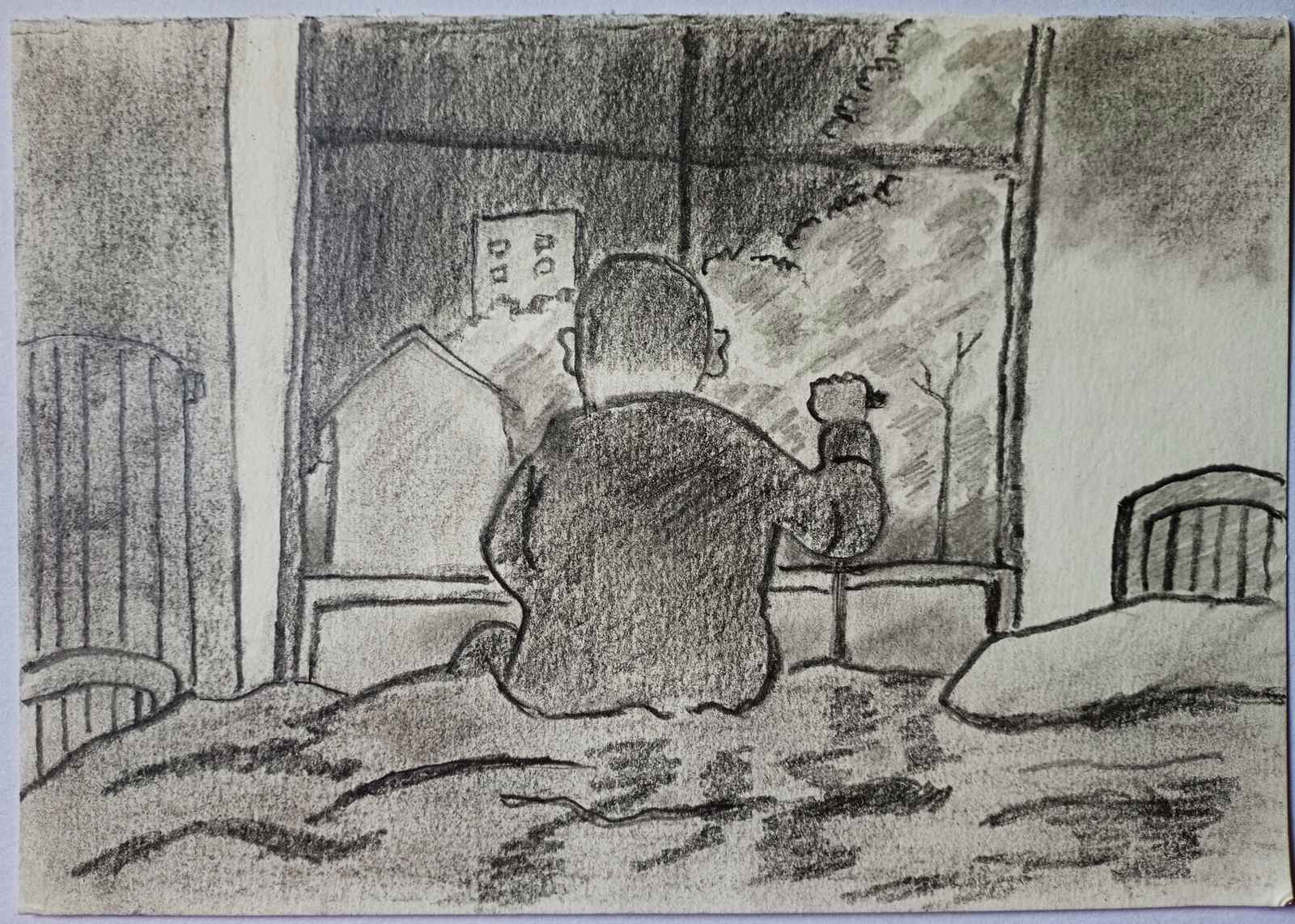 ⬆ 望著窗外的病人 (鉛筆+炭筆+黃色素描紙)