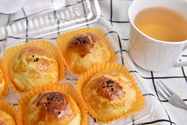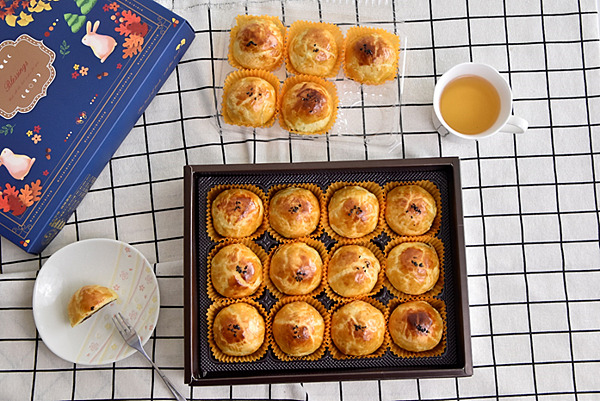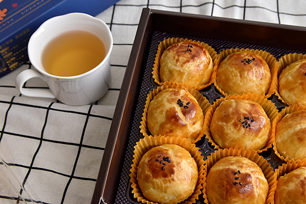 不只中秋禮盒外包裝吸睛 蓁古早味的蛋黃酥本身也非常有看頭耶! 大小我覺得和一般餅店賣得差不多,不會說太大顆容易膩 重點是香氣超級棒~跟他們家的蛋糕一樣,剛打開就能聞到陣陣麵粉和奶油的香氣,超級誘人