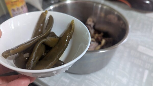誠泰的剝皮辣椒煮一段時間後竟然還保持口感,不會像有些品牌煮完變得超軟爛,也難怪誠泰會被很多人拿來推薦成廚房必備調味之一。